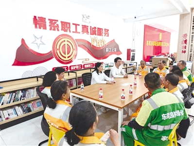 ■东莞市厚街镇总工会与劳动者围坐交谈。单位供图