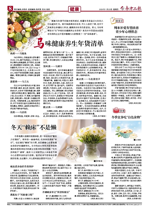 随着马年春节的脚步越来越近,购置年货准备过大年的人们也愈加忙活。面对琳琅满目的年货,不少人挑花了眼,但对于热衷养生保健的人来说,健康类的年货仍是首选。那么,马年有哪些与“马”字相关的健康养生年货呢?南京市中西医结合医院老年病科主治中医师鲁慧为大家整理了一份“采购清单”。