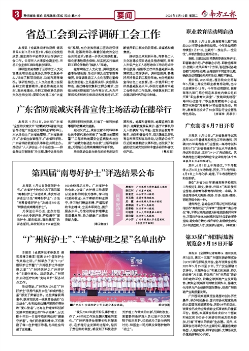 - 省总工会到云浮调研工会工作 本报讯 (全媒体记者徐亚辉 通讯员云工宣)5月8日至9日,省总工会党组成员、副主席许平坚带队到云浮调研工会工作。云浮市人大常委会副主任、市总工会主席江洪灿等参加调研。 调研组实地考察了云浮市工