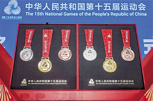 ▶第十五届全国运动会群众赛事活动奖牌与竞技体育项目奖牌。 黎佳能/摄