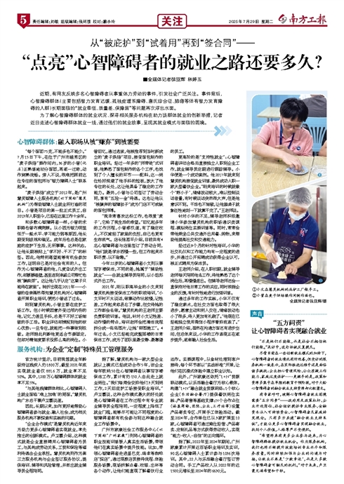 ①小文在慧灵机构的庇护工厂做手工。 ②小曾在麦子烘焙操作间制作面包。 全媒体记者徐亚辉/摄 近期,有网友反映多名心智障碍者从事重体力劳动的事件,引发社会广泛关注。事件背后,心智