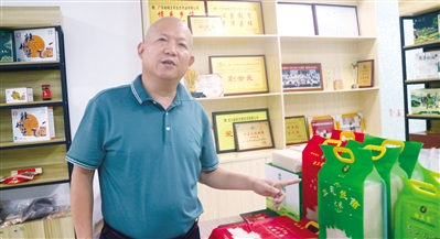 “全市有1万多农户是我的服务对象。”1993年毕业于华南农业大学的张艺强,一直在华南植物园从事水稻品种研发工作。2006年,他开始回到家乡河源市龙川县推广优质水稻品种,为农户提供水稻产业化服务。现在,身为龙川县稻丰源农资有限公司总经理、越王贡米创始人,龙川田野是他的主战场,“龙川生态环境优良,具备晚造水稻的最佳气候条件,生产的大米一定是最优质的大米。”