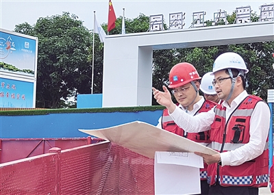 ■中建八局华南公司深圳前海时代项目副经理杨冬(右)在项目前期策划指导。单位供图