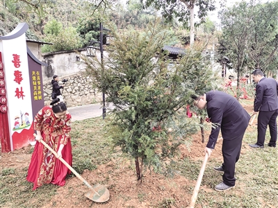本报讯 (全媒体记者林婷玉 通讯员林荫)近日,广东各地集中举办青年集体婚礼暨“有喜事 来种树”活动,超1000对新人携手种下象征爱情常青的“同心树”。