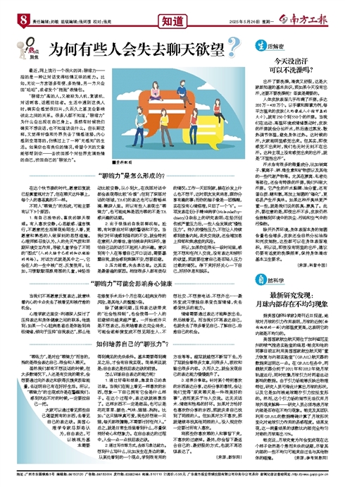 “聊缩力”高的人,又被称为人机、复读机、对话刺客、话题终结者。生活中遇到这类人时,确实会感觉很扫兴,久而久之甚至会影响彼此之间的关系。很多人都不知道,“聊缩力”为什么会出现在自己身上。虽然有时候我们确实不想说话,也不知道该说什么。但长期这样,又觉得好像和外界失去了情感连接,内心感到空落落的,仿佛过上了一种“无感知”的生活。如果你也有类似的情况,希望今天的文章能够帮到你——去找回那个对世界充满热情的自己,找回自己的“聊张力”。