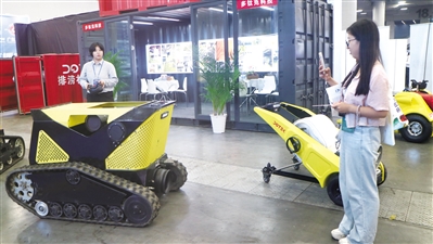 ■活动现场,一款外形独特的内涝排水机吸引观众拍摄。全媒体记者彭新启/摄