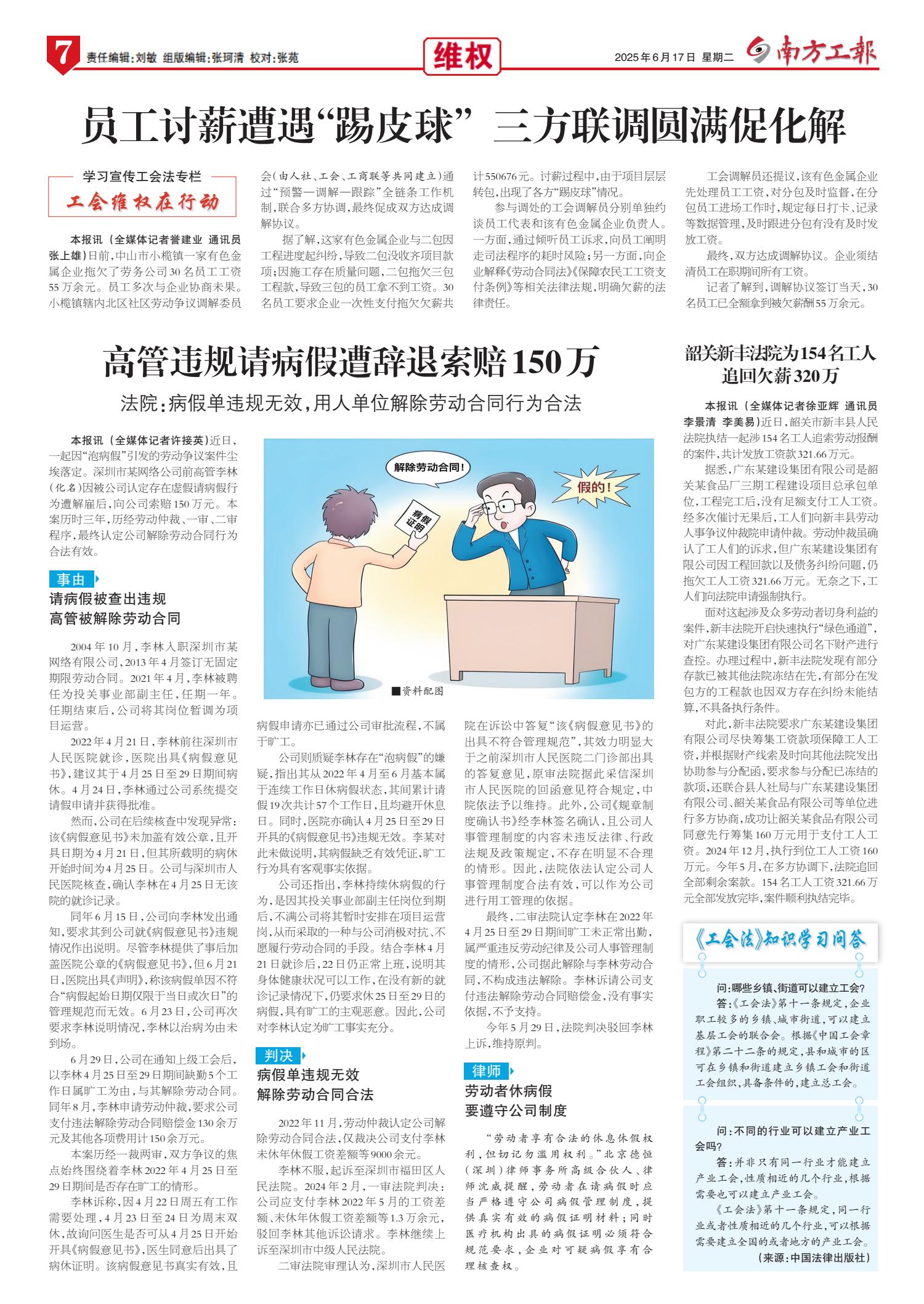 高管违规请病假遭辞退索赔150万