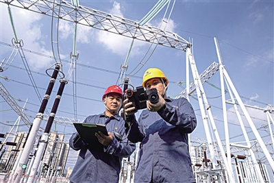 ■工作人员对500千伏植物油变压器进行红外测温。单位供图
