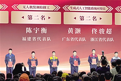 本报讯 (全媒体记者徐亚辉)11月13日,全国总工会第二届职工数字化应用技术技能大赛决赛在福建福州海峡国际会展中心圆满落下帷幕。在这场汇聚全国职工数字技能精英的赛事中,广东省代表队表现亮眼,选手黄灏、廖伟杰分别获得观摩赛生成式人工智能系统应用员的第二名和第三名。