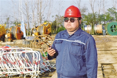 ■唐浩在施工现场进行指挥协调。全媒体记者梁鸿杰/摄