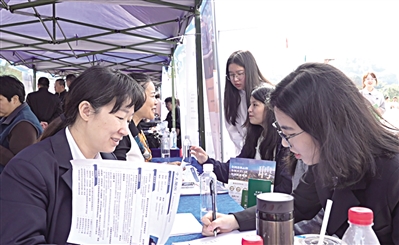 ■活动现场,应届毕业生与用人单位深入交流。单位供图