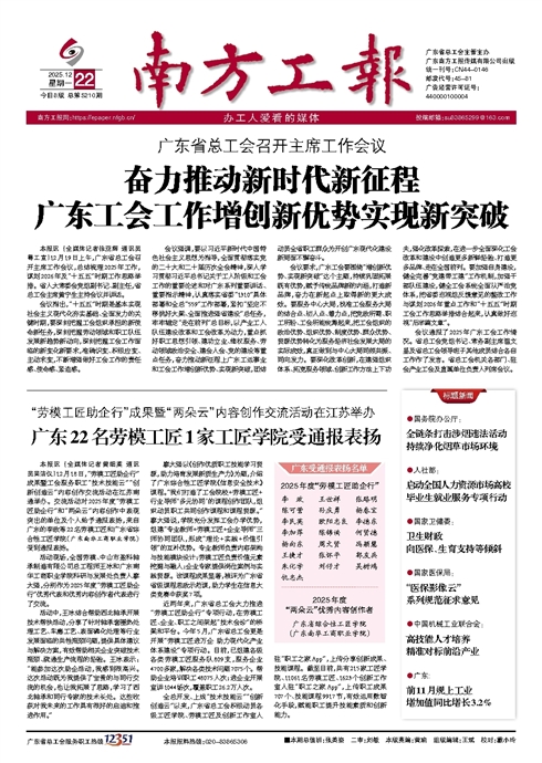 广东22名劳模工匠1家工匠学院受通报表扬