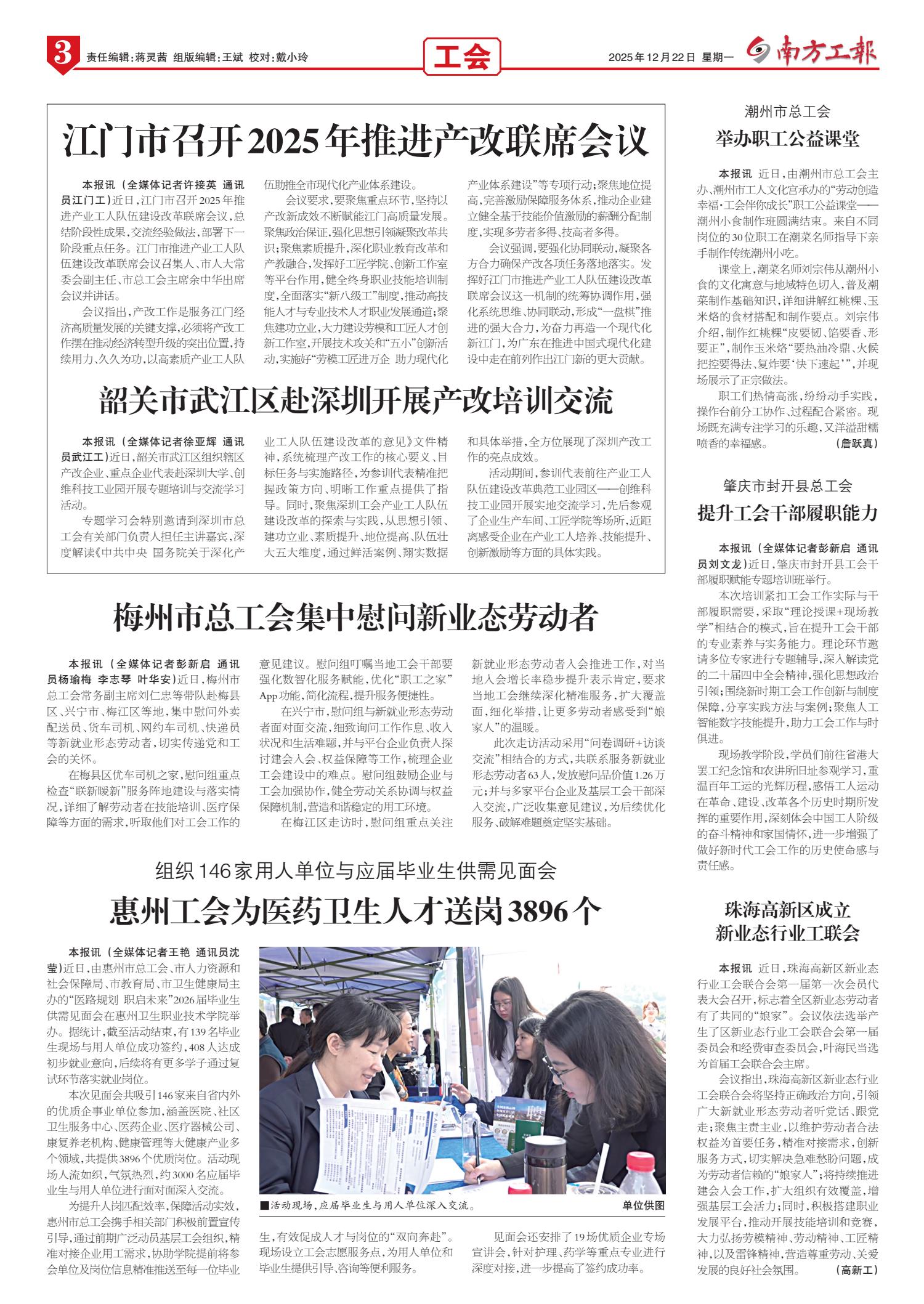 惠州工会为医药卫生人才送岗3896个