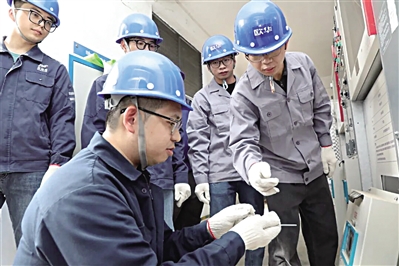 ■机械电气领域劳模工匠丁煜对产业工人进行培训指导。 单位供图
