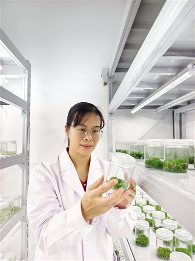 ■韦坤华在实验室观察实验材料生长状况。刘莹/摄