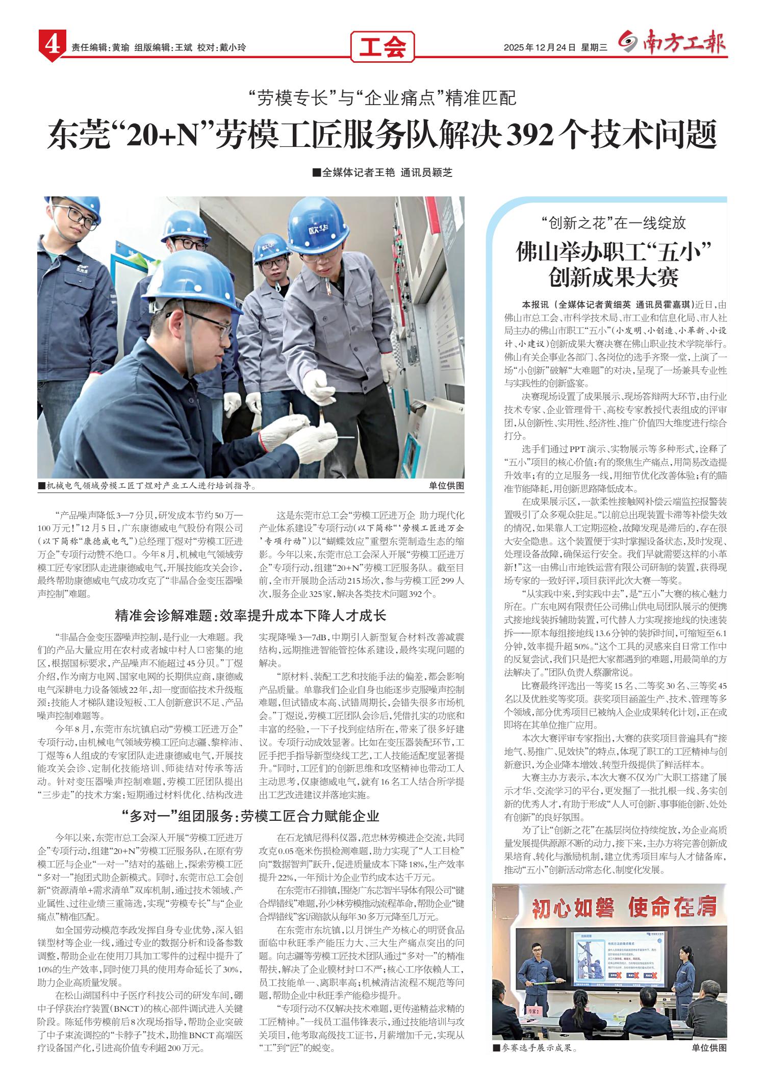 东莞“20+N”劳模工匠服务队解决392个技术问题
