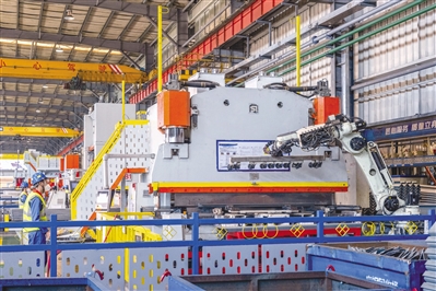 ■近日,位于广州市南沙区的中远海运发展股份有限公司所属上海寰宇物流装备有限公司广州箱厂正开足马力生产集装箱。生产车间经过改造,大量应用机械臂,为集装箱制造提供了更安全、更高效、更智能的解决方案。