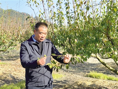 “现在是施冬肥阶段,等叶子落完了,就要开始剪枝,到2月就会开花了。”走进九峰镇黄金柰李种植基地,潘国平一边观察柰李果树的长势,一边熟练地介绍着种植管理流程。