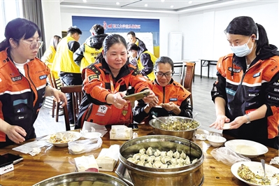 经过一番忙碌,一盘盘热气腾腾的饺子新鲜出锅。大家围坐在一起,品尝着自己亲手包的饺子,暖胃又暖心。“平时我们都奔波在送餐、送件的路上,很少有这样的机会和同行聚在一起。感谢‘娘家人’让我们感受到了家的温暖。”一位外卖骑手笑着说道。