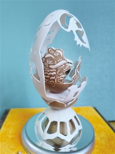 ▶徐茂深雕刻的蛋壳作品。受访者供图