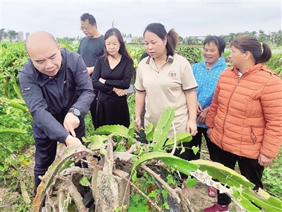 2025年10月21日,位于珠海市斗门区井岸镇的珠海市红遍天农业专业合作社火龙果种植基地内,省劳模工匠、农村乡土专家、高级农艺师陈长贵携专业技术团队,为合作社的火龙果、莲藕产业带来一场农业技术赋能行动,成为斗门区总工会和井岸镇总工会主办的劳模工匠进万企专项行动的鲜活实践。