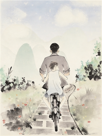 童年的很多时光,都是依附在父亲那辆二八大杠的后座上。他是一名“义务邮递员”,空闲时间总在乡野的阡陌之间穿梭,我便成了他车后座上小小的一个“物件”。父亲的后背就像门板般厚实。那时候,我也喜欢双臂紧紧环抱他,脸颊贴在那件洗得泛白且微微粗糙的绿工装上。车轮碾过土路,颠簸起伏,我的小身子也随着车势摇晃,父亲的后背就成了极安稳的靠山。那后背在日复一日的路途上,在风霜雨雪的侵蚀之中,始终是温热且坚实的依靠。车行过处,眼前铺展开了田畴,绿意悠悠地绵延到天边,但是父亲的后背却成了我眼中唯一不曾移动的景致,它好似一堵挡风的墙,圈住了我满是暖意的整个童年。