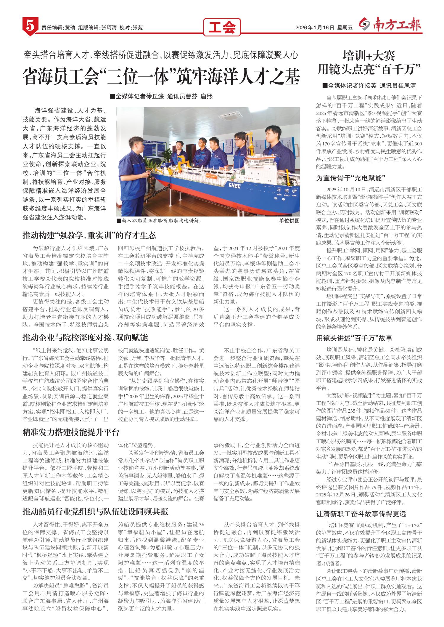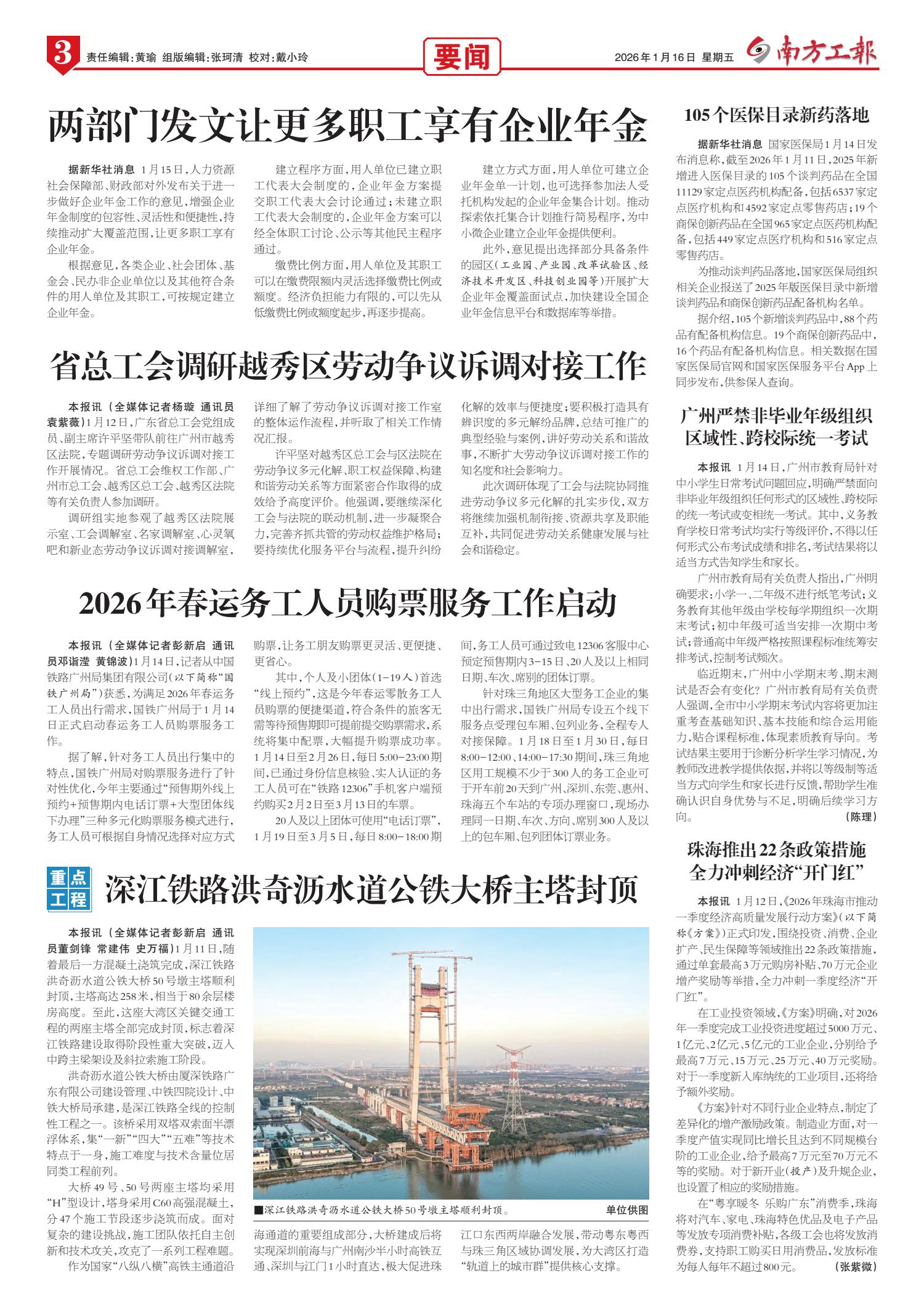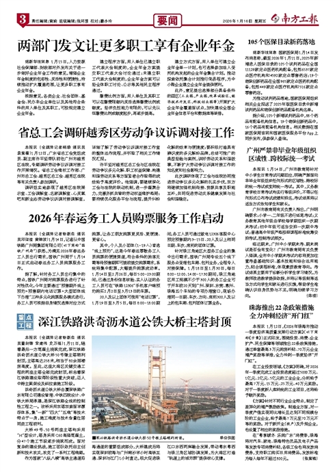 南方工报 封面 01 2026-01-161 2026年01月16日 星期五