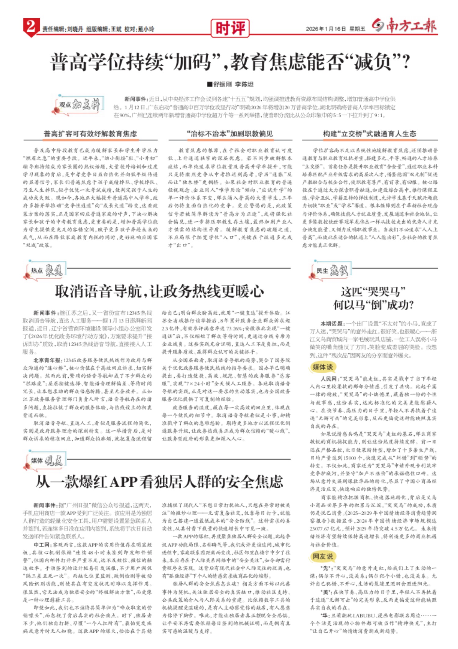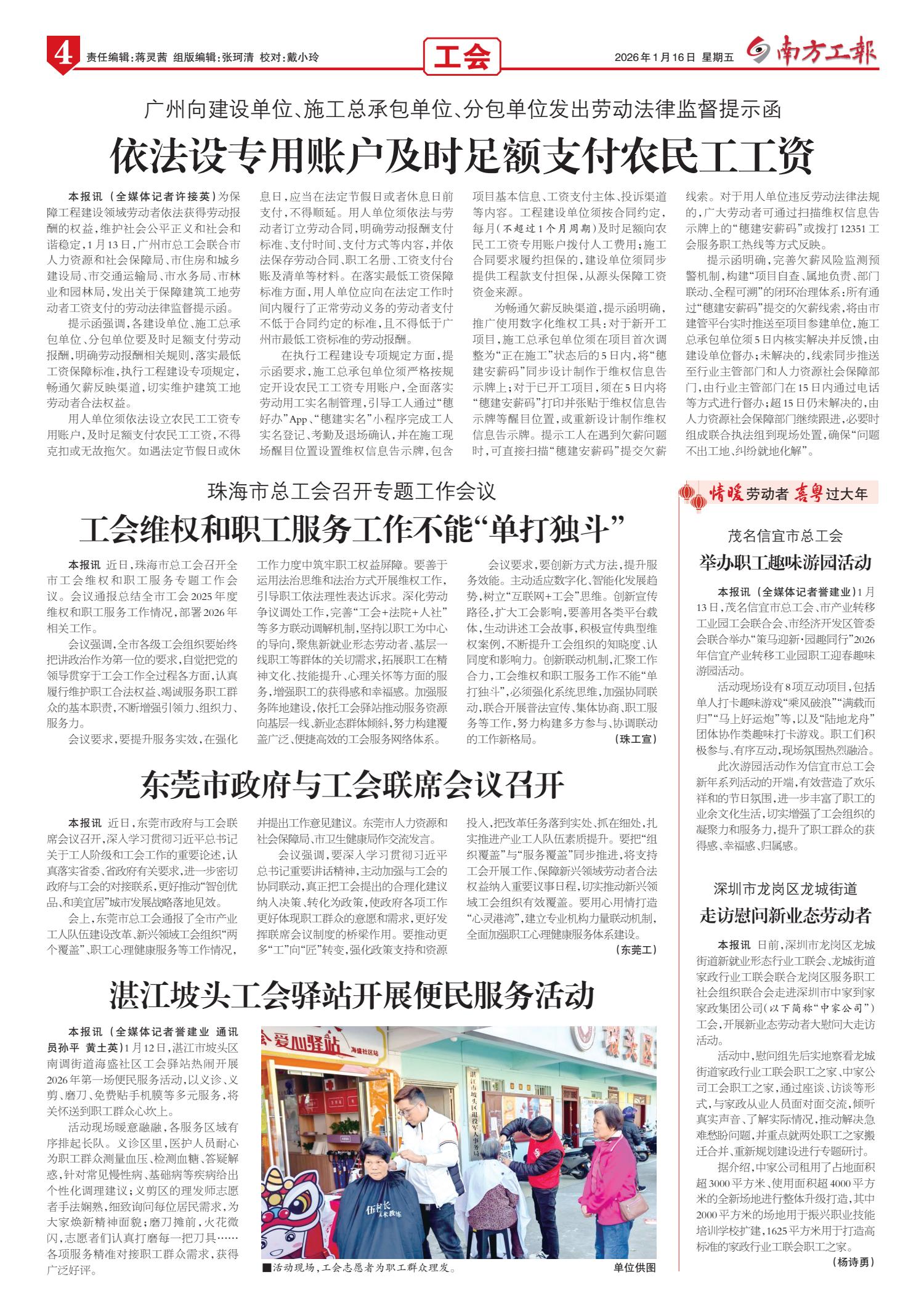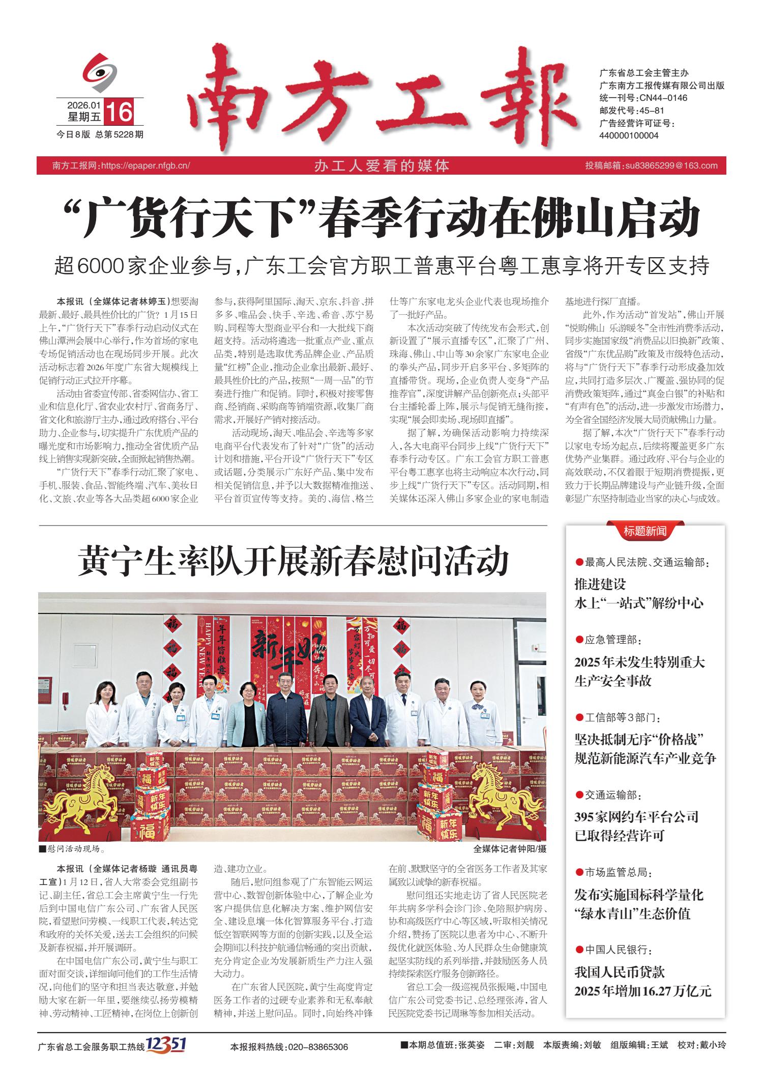 南方工报 封面 01 2026-01-161 2026年01月16日 星期五