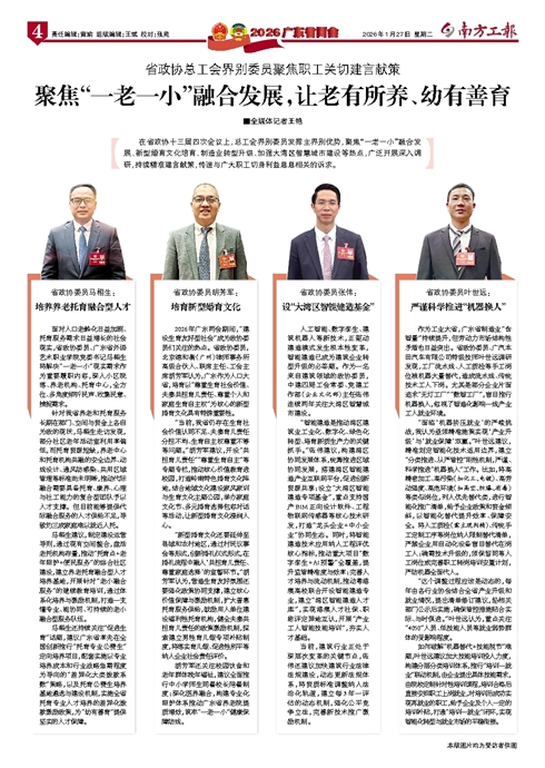胡芳军还关注校园饮食和老年群体晚年福祉,建议全面推行中小学师生同餐校长陪餐制度;深化医养融合,构建专业化照护体系推动广东省养老院提质增效,筑牢“一老一小”健康保障防线。