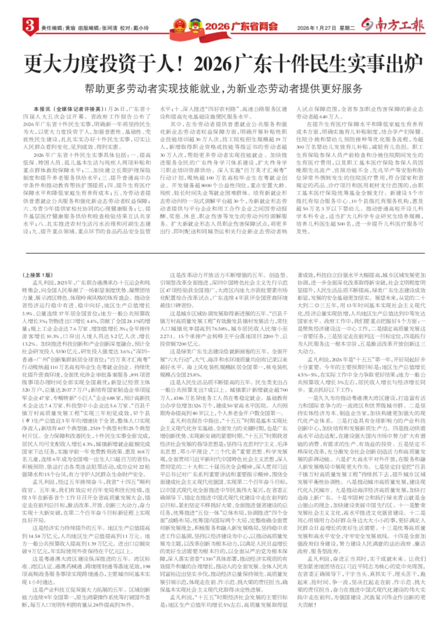 更大力度投资于人!2026广东十件民生实事出炉