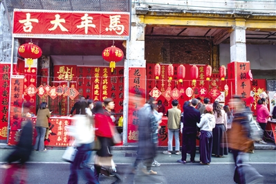 ■佛山市禅城区筷子街里,市民在选购对联。