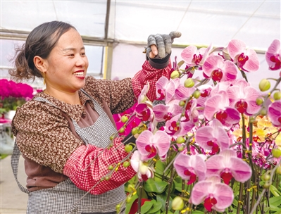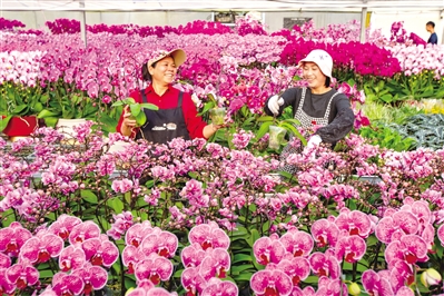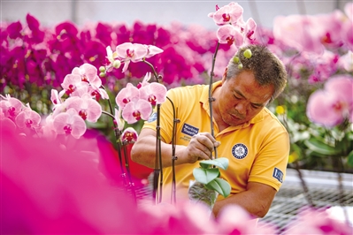 ①②广州市白云区一蝴蝶兰种植基地,花农正在忙碌着修枝。特约摄影师陈志强 王美燕