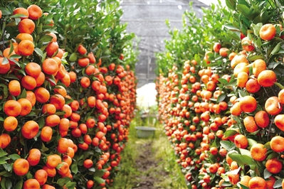 ■广州市白云区一年桔种植基地内金灿灿的硕果。特约摄影师王美燕
