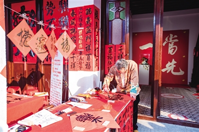 ■正在写对联的筷子街店家。特约摄影师陈志强