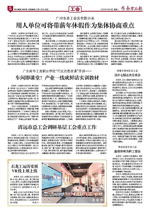 广东南华工商职业学院表示,将着力打造“校内理论铺垫、校外实践赋能、线上资源反哺”的立体化思政育人格局:校内开设《走在前列的广东实践》课程夯实理论基础;校外依托省级职工技能提升特色实训路线拓展实践场景;线上归集授课影像、学生感悟、教学案例等数字资源,持续丰富思政教学资源库,形成闭环育人机制。