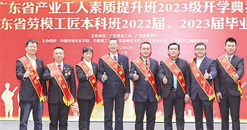12月19日上午9时许,广东南华工商职业学院校园里处处洋溢着喜悦。2022届、2023届的广东省劳模工匠本科班134名学子从全省各地赶来参加毕业典礼,他们在打卡处拍照合影留念,记录这段难忘的求学时光。100名2023级广东省产业工人素质提升班新生同时亮相,接力求学。