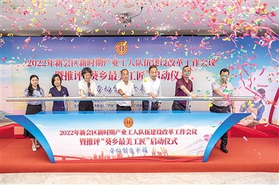 ②2022年,江门市新会区新时期产业工人队伍建设改革工作会议暨推评“葵乡最美工匠”启动仪式现场。