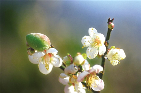 梅花“三弄”预计时间为2024年1月8日至15日,其特点是枝梢梅花次第而开,花开稀落,有绿芽相伴、有小果相随,象征春天的到来。