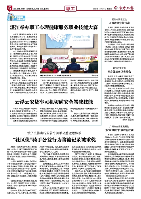 - 湛江举办职工心理健康服务职业技能大赛 ■参赛选手讲述职工心理健康服务案例故事 单位供图 本报讯 (全媒体记者誉建业 通讯员刘秀媚)12月17日,由湛江市总工会、湛江市卫生健康局、湛江市教育局主办的湛江市2023年职工心理健康服务职