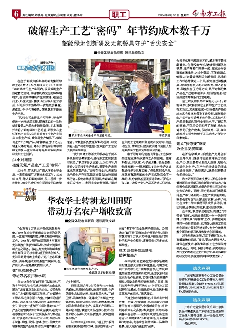 - 破解生产工艺“密码” 年节约成本数千万 ■罗名宇在车间查看产品质量外观。单位供图 在位于韶关市新丰县的韶能集团绿洲生态(新丰)科技有限公司(以下简称“韶能绿洲”)生产车间内,多条智能生产线在繁忙运转,伴随着机器发出的阵阵嗡鸣声,由甘蔗榨