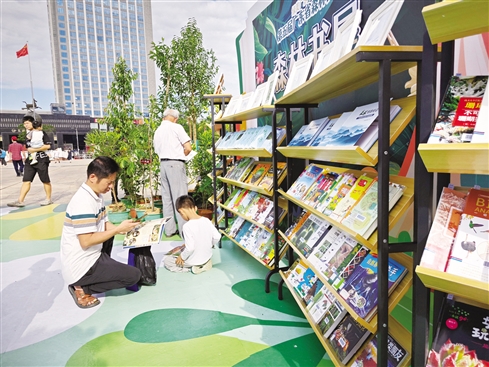 ■活动现场“森林书屋”一角。全媒体记者林婷玉/摄