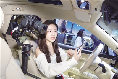 “宝宝们想看哪款车型?在我直播间下单有优惠……”在人潮汹涌的车展现场,让记者印象深刻的另一幕还有无处不在的举着手机直播的主播们。