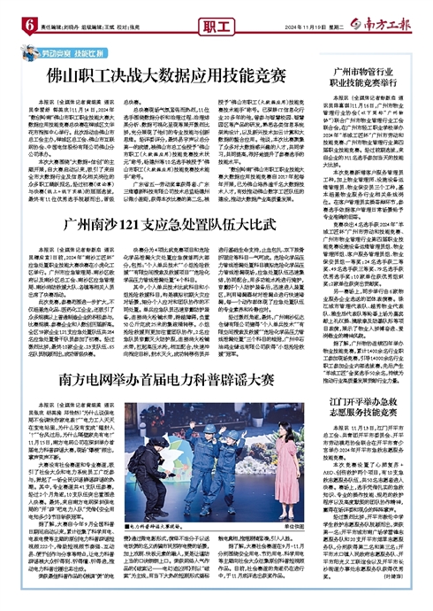 - 佛山职工决战大数据应用技能竞赛 本报讯 (全媒体记者黄细英 通讯员李爱舒 郭美欢)11月14日,2024年“数创岭南”佛山市职工职业技能大赛大数据应用技能竞赛总决赛在禅城区文华花市指挥中心举行。此次活动由佛山市总工会主办,禅城区