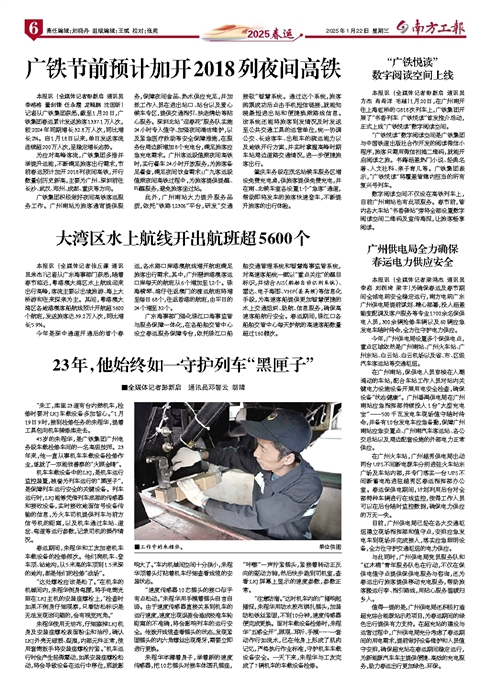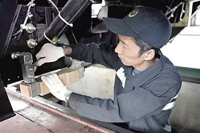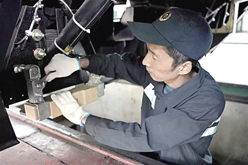 春运期间,朱程华和工友加密机车车载设备的检修频次。他们爬机车、登车顶、钻地沟,从5米高的车顶到1.5米深的地沟,都是他们的检修“战场”。