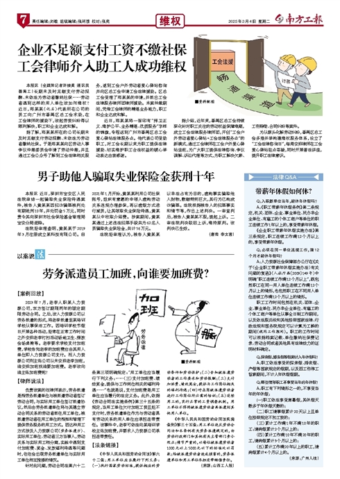 - 企业不足额支付工资不缴社保 工会律师介入助工人成功维权 本报讯 (全媒体记者许接英 通讯员番禺工)长期未及时足额支付劳动报酬、未依法为劳动者缴纳社保……劳动者遇到这样的用人单位该如何维权?近日,郑某某(化名)代表所在公司的员工向广州市番禺区总工会求助,