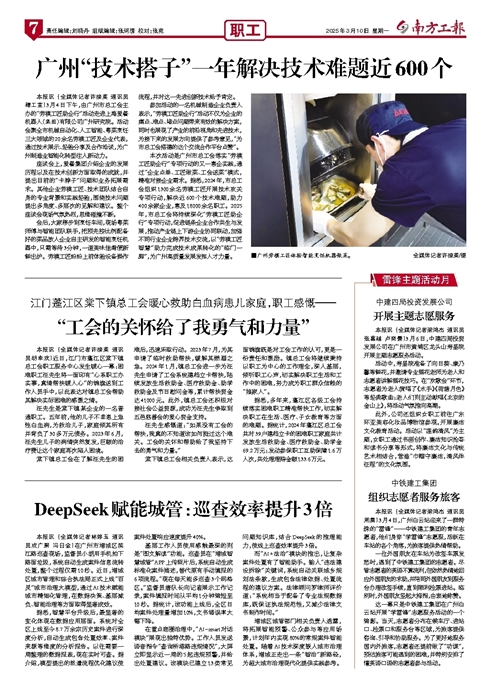 - DeepSeek赋能城管:巡查效率提升3倍 本报讯 (全媒体记者林婷玉 通讯员成广聚 冯日金)在广州市增城区滨江路巡查现场,监督员小胡用手机拍下路面垃圾,系统自动生成案件信息流转处置,整个过程仅需10秒。近日,增城区城市管理和综合执法局正式