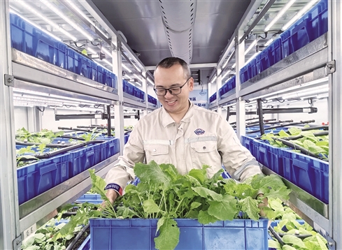 原来,这艘船早在两年前就搞起了“黑科技”——种植集装箱,通过配备智能水培系统、模拟自然光照,生菜、菠菜、小白菜、西红柿……72个种植筐里绿油油的蔬菜一茬接一茬,船员直呼:“现在每餐都有两盘蔬菜,根本吃不完!”