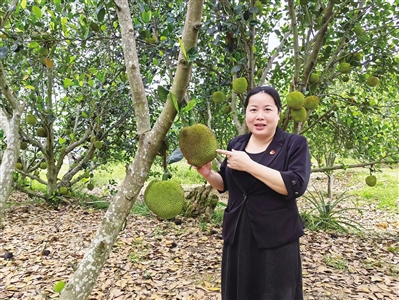 ■彭子玲介绍新塘村特色农产品袖珍菠萝蜜。全媒体记者誉建业/摄