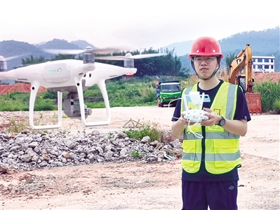 ■赖泽彬正利用无人机进行测绘作业。单位供图