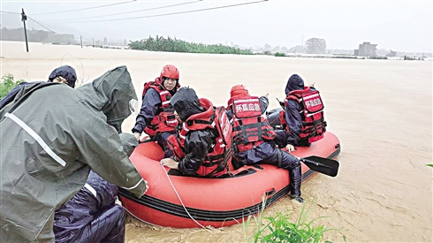 ■肇庆市应急管理局营救被洪水围困的工人。单位供图